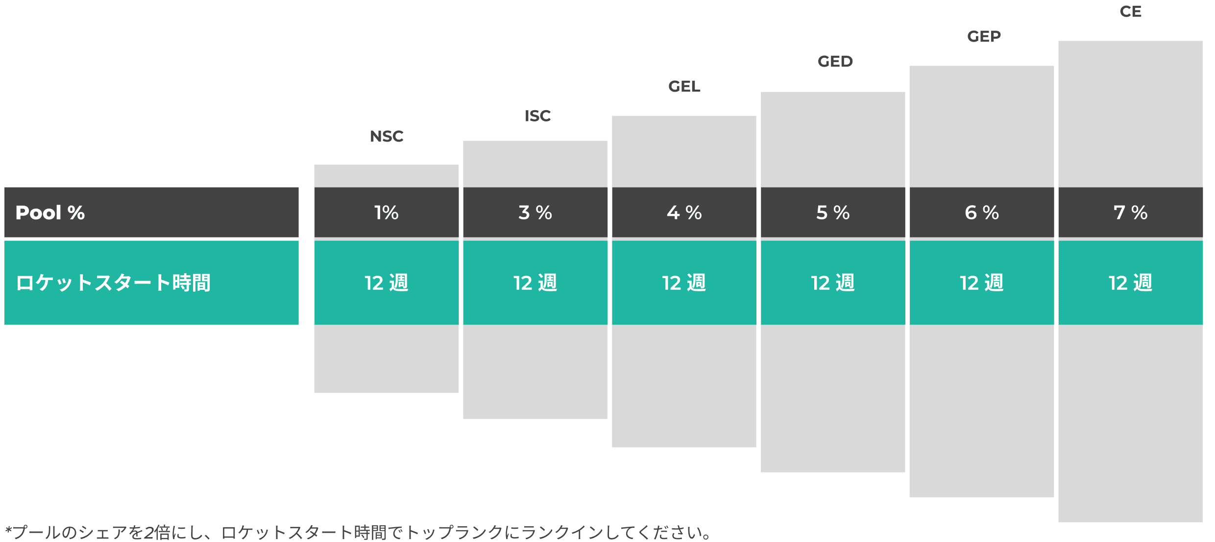 Shopwithmeでは、優れたリーダーシップを認識して報酬します。当社のランクボーナスプールでは、資格のあるリーダーに対して世界中のファストスタートPVの最大12%(=10%)をボーナスとして提供しています。3人のリーダーを支援することで、印象的なランクと月間のランクボーナスを獲得できます。